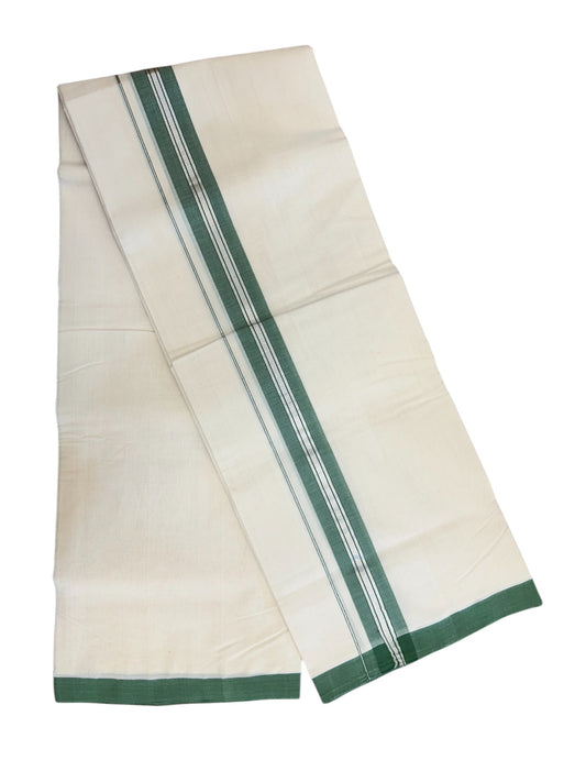 25% Discount!! KaithariKada Handloom Millpaav Balaramapuram - 100% Pure Cotton Off White Double - (Unbleached) Mundu/Dothi - 80x90 - 0.75 Inch Kasav Dark Green Puliyilakkara chutty - 67KK5234 RAM