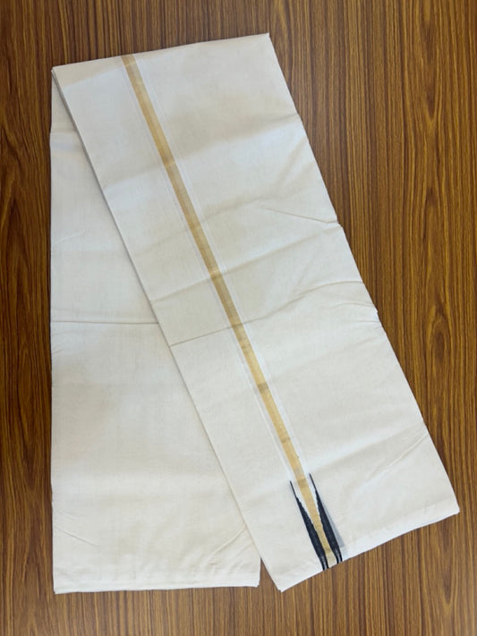 25% Discount!! KaithariKada Handloom Millpaav Balaramapuram - 100% Pure Cotton Off White Double - (Unbleached) Mundu/Dothi - 80X90 - 1.25 inch Puliyilakkara Black & Gold Kasav Stripes chutty Kara 4 mtr (8.5 Muzham)- 9KK5234 RAM