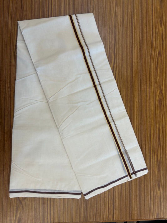 25% DISCOUNT!! KaithariKada HANDLOOM Millpaav Balaramapuram - 100% PURE Cotton OFF White Double - (Unbleached) Mundu/Dothi - 2.75 inch BROWN GOLD kasavu Stripes Kara - 39KK5029RAM