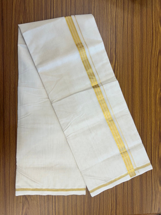 25% Discount!! KaithariKada Handloom Millpaav Balaramapuram - 100% Pure Cotton OFF White Double - (Unbleached) Mundu/Dothi - 80x90 - 1.5 inch Gold silver kasavu & White striped Kara - 84 KK5234 RAM
