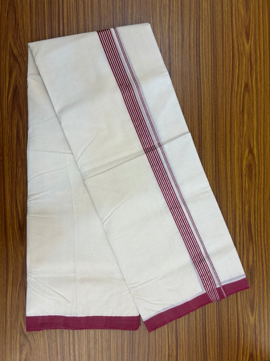 25% Discount!! KaithariKada Handloom Millpaav Balaramapuram - 100% Pure Cotton Off White Double - (Unbleached) Mundu/Dothi -80x90 - 1.25 Inch Silver Kasav & Reddish Maroon Stripes kara 4mtr (8.5 muzham) - 12 KK5264 RAM