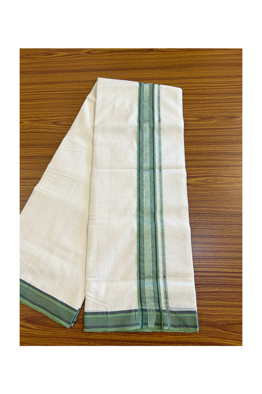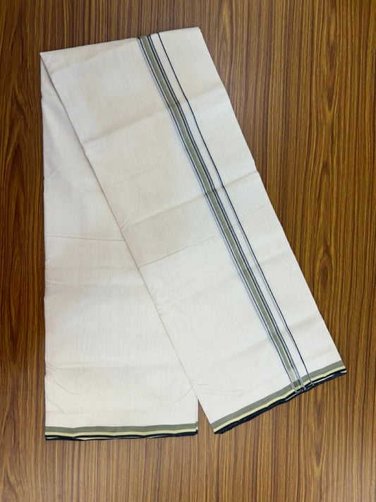 25% Discount!! KaithariKada Handloom Unakkupaav Balaramapuram - 100% Pure Cotton Off White - (Unbleached) Double Mundu/Dhoti - 1.75 inch Green Brown & Silver striped pattern kara - 47KK403RAM
