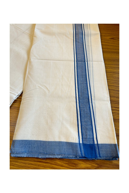 25% Discount!! KaithariKada Handloom Unakkupaav Balaramapuram - 100% Pure Cotton Off White (Unbleached) Double Mundu/Dothi - 1.75 Inch Blue Kara - 31KK456KK