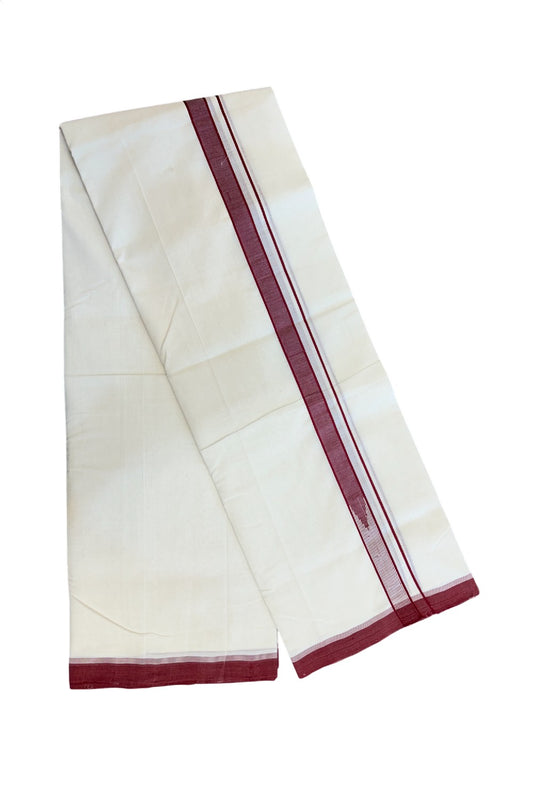 25% Discount!! KaithariKada Handloom Unakkupaav Balaramapuram - 100% Pure Cotton Off White - (Unbleached) Double Mundu/Dhoti - 80X100 - 1 inch Puliyilakkara Reddish Maroon chutty Kara 3.80 meter (8.5 Muzham) - 41KK5209 REA