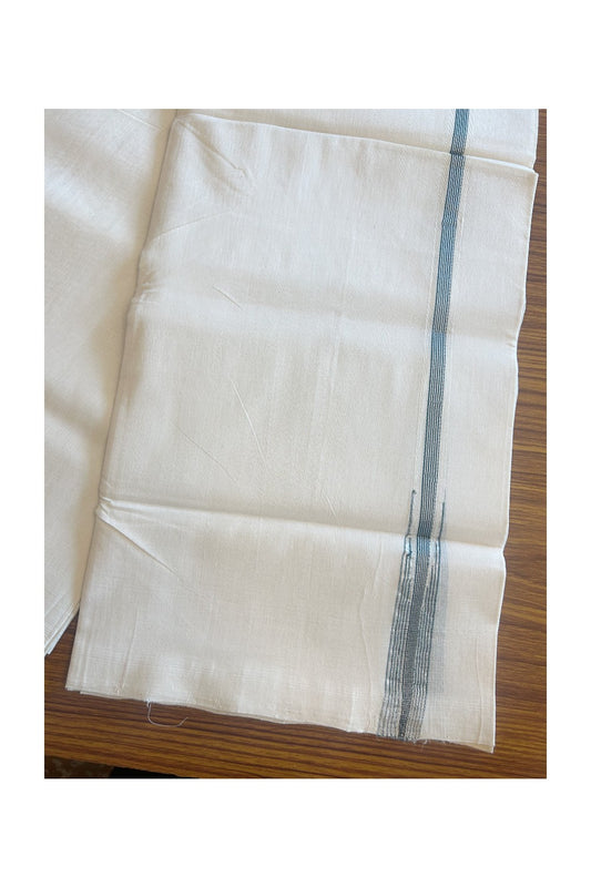 25% Discount!! KaithariKada Handloom Unakkupaav Balaramapuram - 100% Pure Cotton Off White (Unbleached) Double Mundu/Dothi - Puliyilakkara chutty Black & Silver Kasav kara 3.70m (8 Muzham) - 33KK203RAM