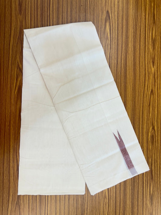 25% Discount!! KaithariKada Handloom Unakkupaav Balaramapuram - 100% Pure Cotton Off White - (Unbleached) Double Mundu/Dhoti - 120 x 100 - 0.75 inch Light Maroon & Brown Chutty Kara 4 meter (8.5 muzham) - 10 KK5233 REA