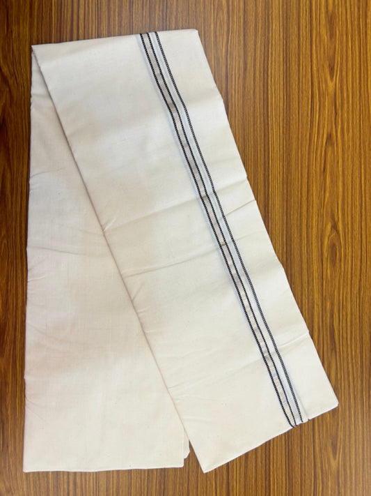 25% Discount!! Signature Kaitharikada Exclusive Single Dhoti - 100% Cotton Balaramapuram Handloom Single Mundu/Dhoti - Off White (Unbleached)- 1 cm Black Striped Kara (2 meter / 4 muzham) - 10 KK5304KAI