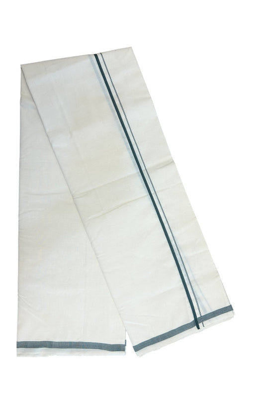 25%DISCOUNT!! SIGNATURE KAITHARIKADA EXCLUSIVE SINGLE DHOTI - 100% Cotton Balaramapuram HANDLOOM Single Mundu/Dhoti - Off White - (Unbleached) 0.25 inch Green Kara (2 meter / 4 muzham)- 1KK5173KAI