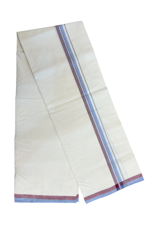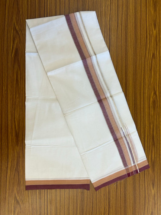 25%DISCOUNT!! SIGNATURE KAITHARIKADA EXCLUSIVE SINGLE DHOTI - 100% Cotton Balaramapuram HANDLOOM Single Mundu/Dhoti - Off White - (Unbleached) 1 inch Maroon Lavender & Gold Kasavu Kara (2 meter / 4 muzham)- 6KK5173KAI