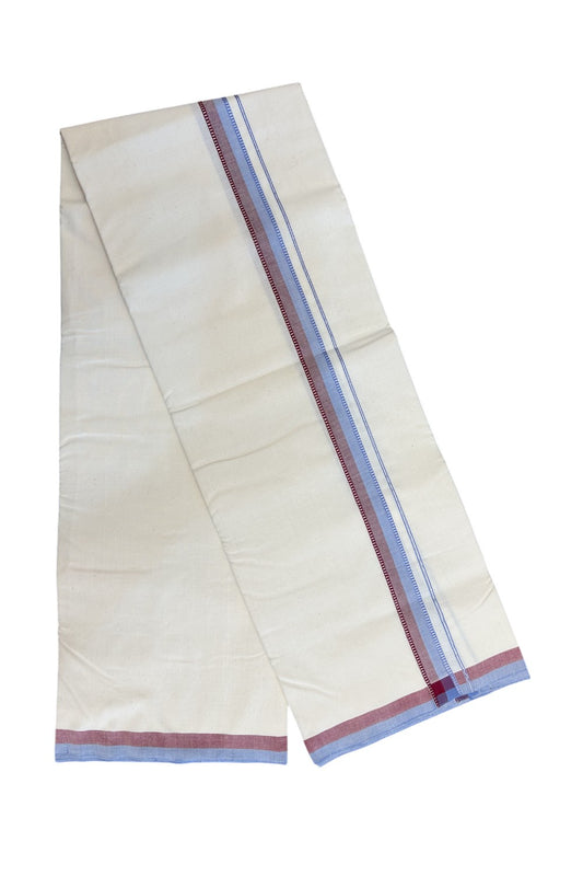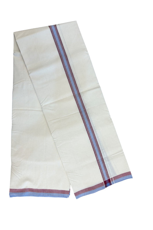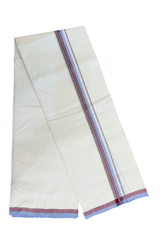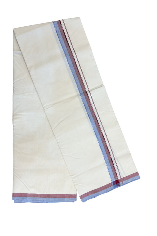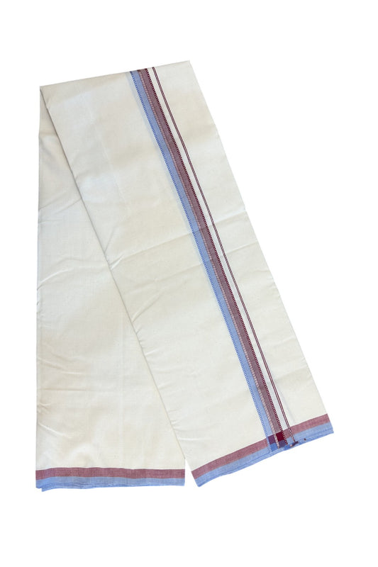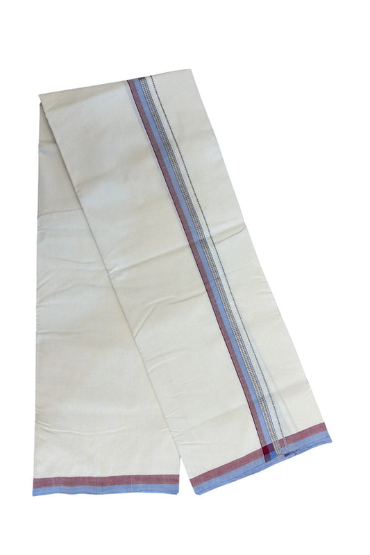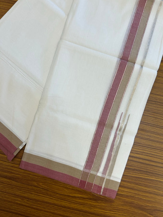 26% Discount ! New! KaithariKada Balaramapuram 100% Cotton Pure white Double Mundu/Dhoti - (100x80)s - 1.5 inch Silver Kasav Light Maroon & Green - 17 KK5270 CKS