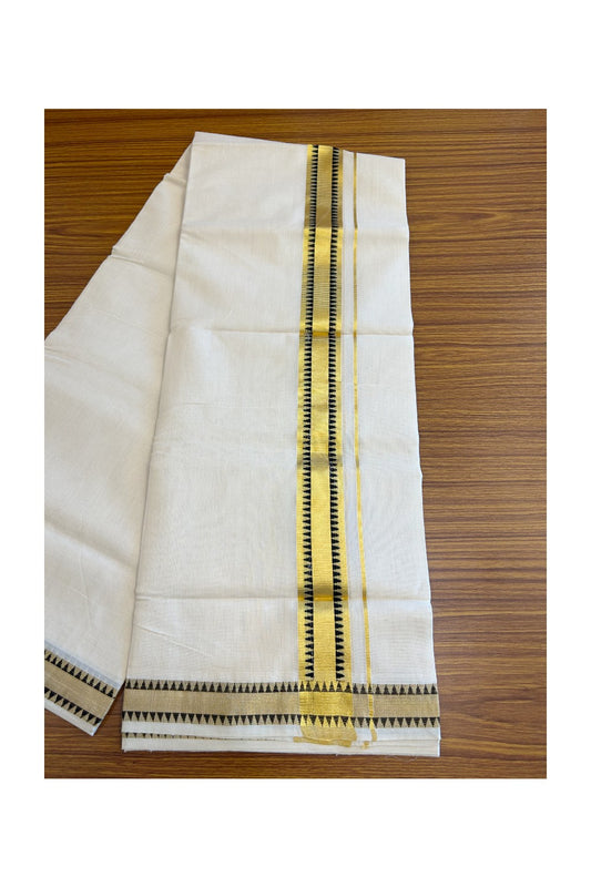 25%Discount!!! KaithariKada HANDLOOM UNAKKUPAAV Balaramapuram - 100% PURE Cotton off white (Unbleached) Double Mundu/Dhoti -100x 100 - 2.5 inch Kasavu & Black Temple design kara - 19KK5096YAR