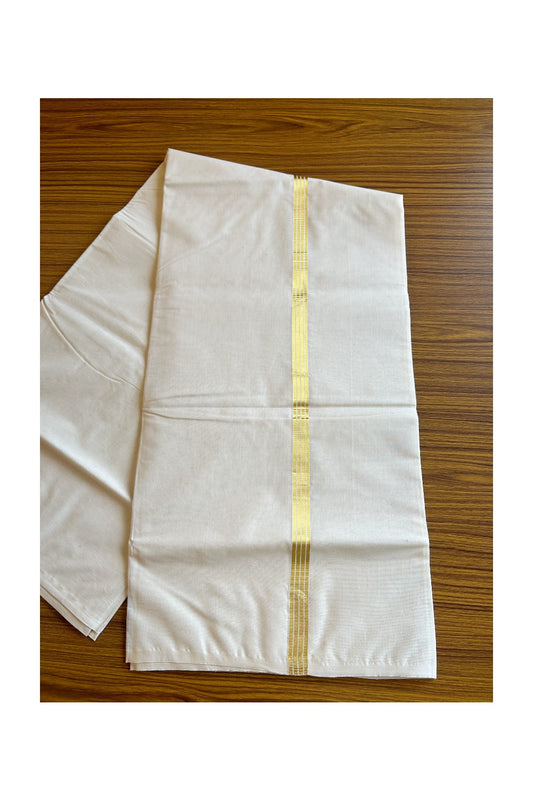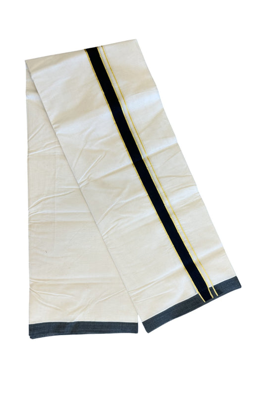 18% Discount ! KaithariKada Balaramapuram 100% Cotton Double Off white - (Unbleached) - Mundu/Dhoti-100X100 - 1.5inch Gold Kasavu & Black Kara.- 8KK5074ASH