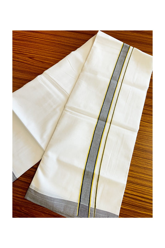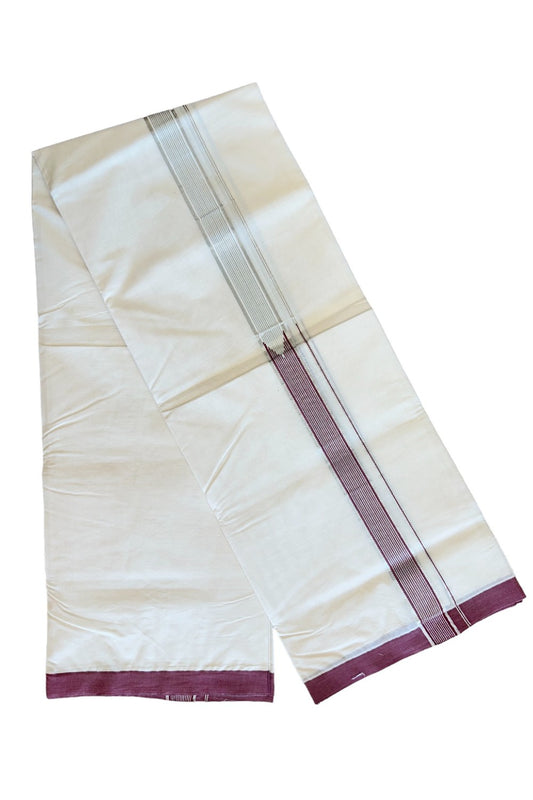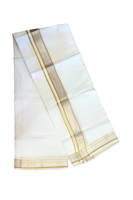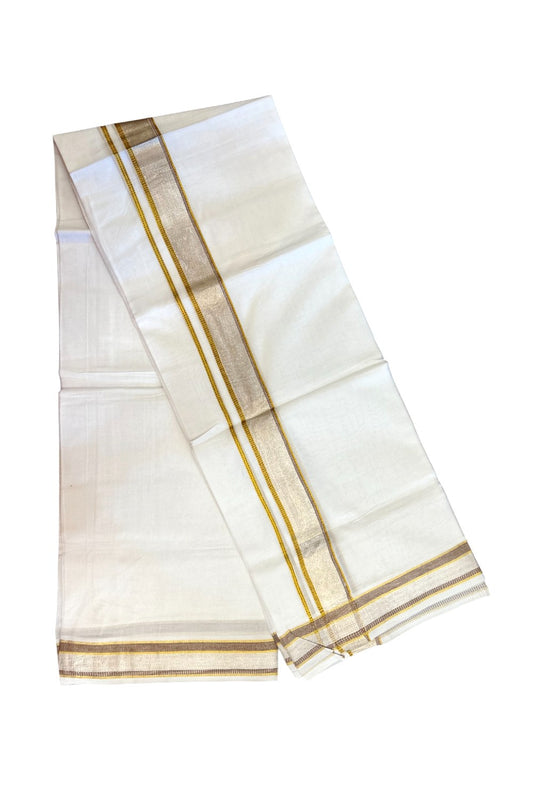 17% Discount! KaithariKada Balaramapuram 100% Cotton Double Pure White Mundu/Dhoti - 100x100 - 1.5 inch Brown Silver Kasav & Gold Kasav Stripes Kara - 6KK5221 GAN