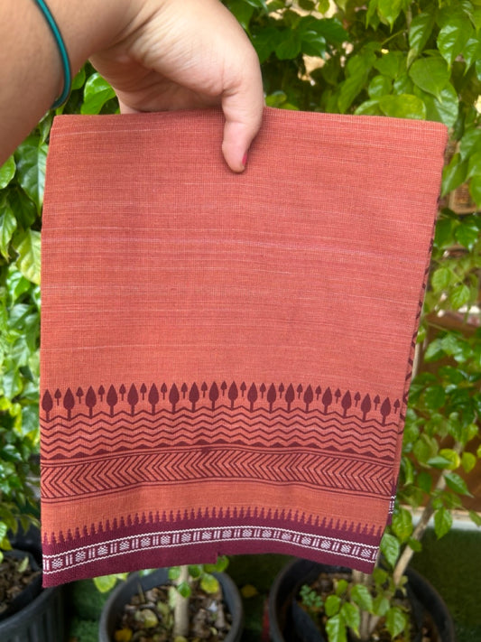 17% Discount!!! Kaitharikada 90% cotton 5 % Polyster - Single Kaily / Lungi - 1.75 inch Maroon printed kuppadam Border with Kavi colour body (2 meter / 4 muzham)- 5KK8022 AS