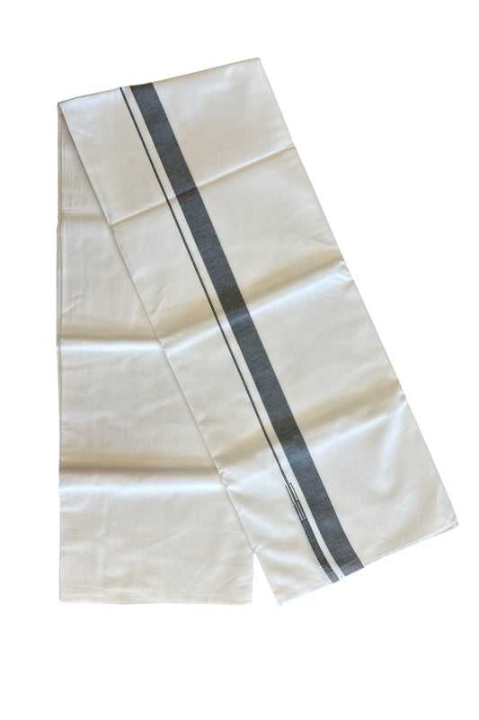 30% DISCOUNT!! KaithariKada Balaramapuram 100% Cotton PURE WHITE Single Mundu/Dhoti-100x100 Puliyilakkara Black Shaded chutty (2 meter / 4 muzham)- 19KK5043ASH