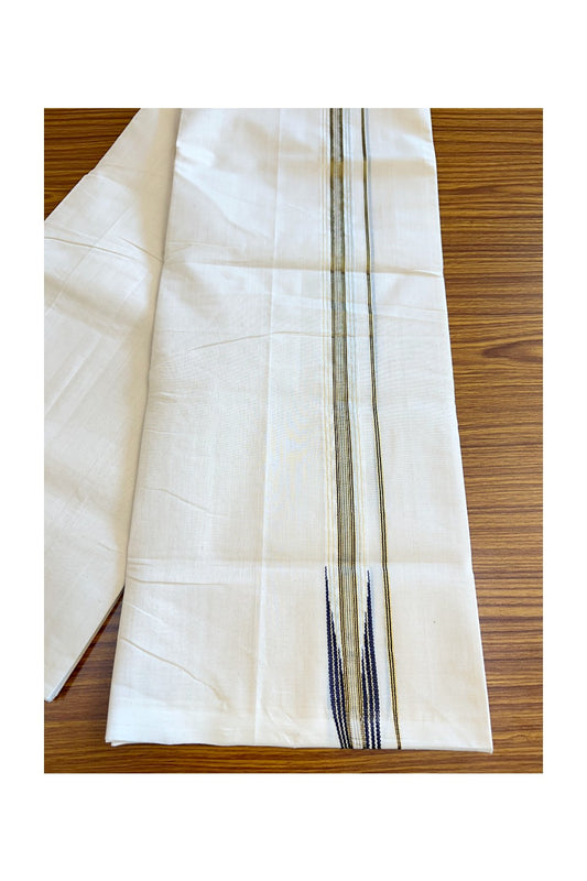 30% DISCOUNT!! KaithariKada HANDLOOM Millpaav Balaramapuram - 100% PURE Cotton OFF White Double - (Unbleached)Mundu/Dothi - 1.25 inch Puliyilakkara Kasavu & Navy Blue Striped Chutty - 9KK5123RAM