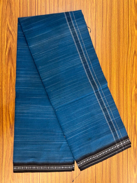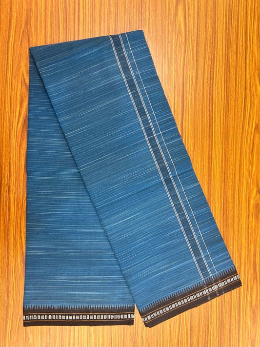 31% Discount!!! Kaitharikada 90% cotton 5 % Polyster - Single Kaily / Lungi - 1 inch Peacock Blue Striped kara with White & Peacock Blue colour body Kuppadam Border (2 meter / 4 muzham) - 22KK8023 AS