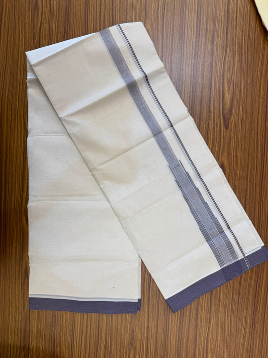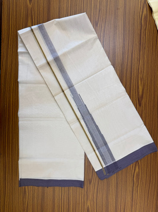 18% Discount! KaithariKada Balaramapuram 100% Cotton Off white Double Mundu/Dhoti - (100x80)s - 1.5 inch Puliyilakkara Dark Violet Stripes Chutty Gold Kasav - 157 KK5258 THI