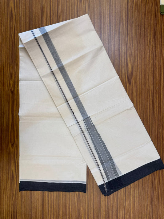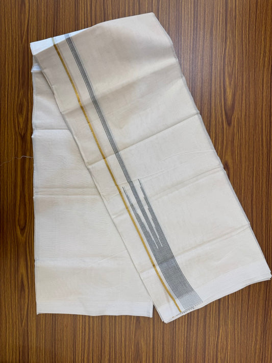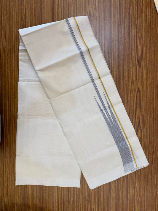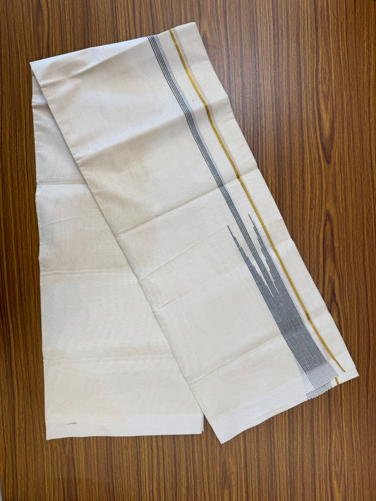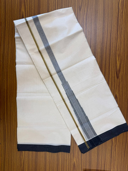 18% Discount! KaithariKada Balaramapuram 100% Cotton Off white Double Mundu/Dhoti - (100x80)s - 1.5 inch Puliyilakkara Black Stripes Chutty Gold Kasav - 155 KK5258 THI
