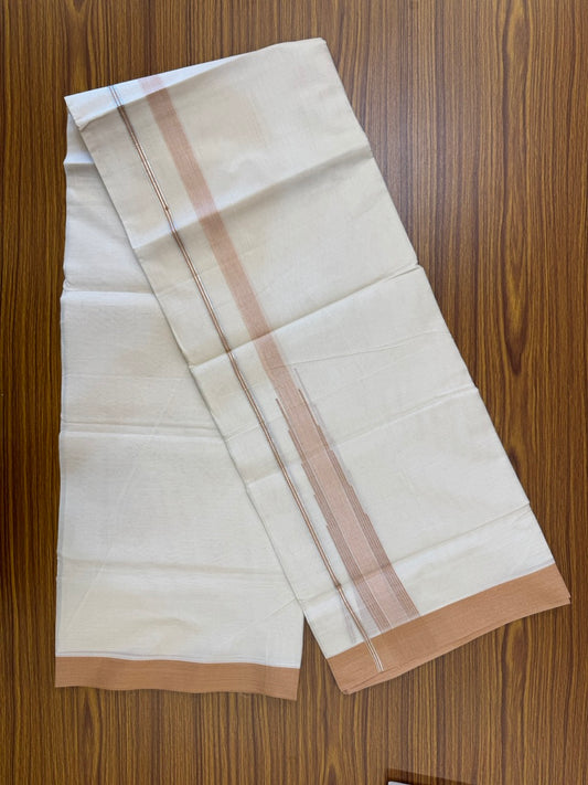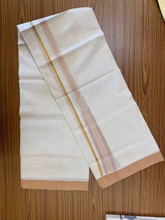 18% Discount! KaithariKada Balaramapuram 100% Cotton Off white Double Mundu/Dhoti - (100x80)s - 1.5 inch Puliyilakkara Peach Brown Stripes Chutty Gold Kasav - 148 KK5258 THI