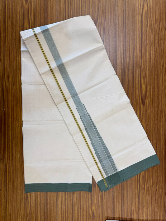 18% Discount! KaithariKada Balaramapuram 100% Cotton Off white Double Mundu/Dhoti - (100x80)s - 1.5 inch Puliyilakkara Dark Sage Green Stripes Chutty Gold Kasav - 156 KK5258 THI