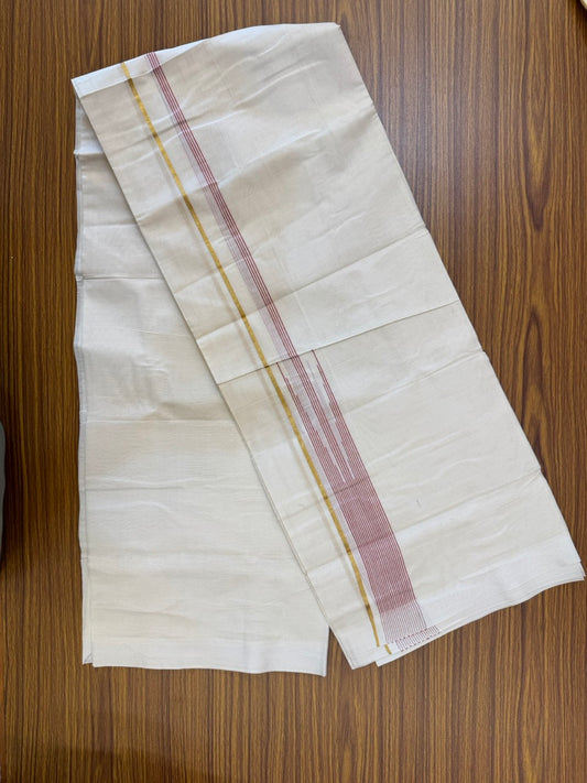 18% Discount! KaithariKada Balaramapuram 100% Cotton Off white Double Mundu/Dhoti - (100x80)s - 1.5 inch Puliyilakkara Pink Red Stripes Chutty Gold Kasav - 154 KK5258 THI