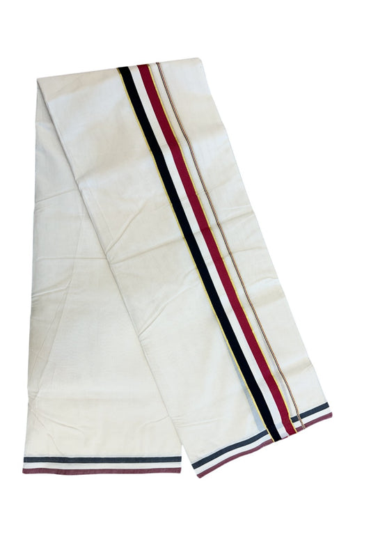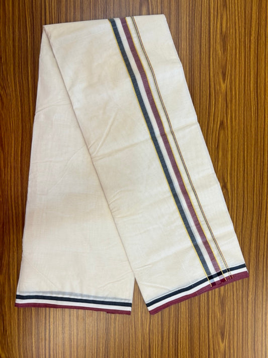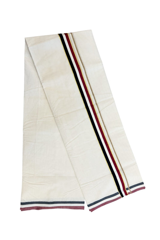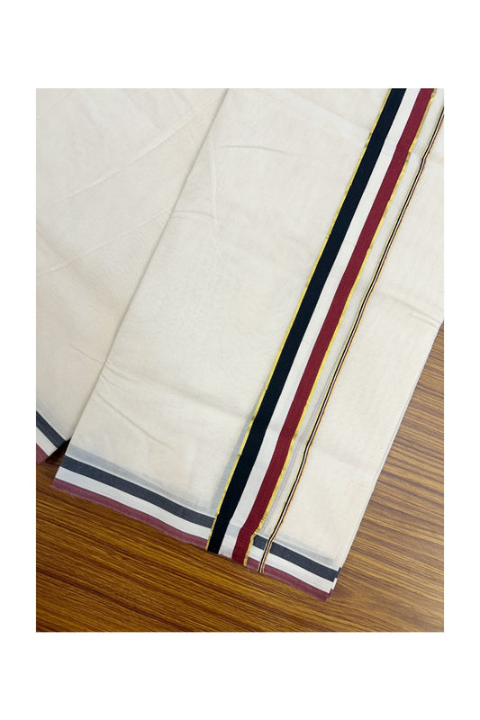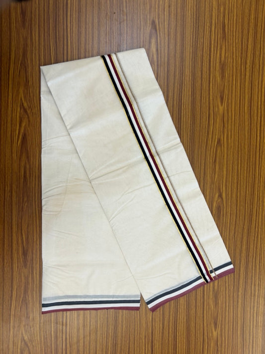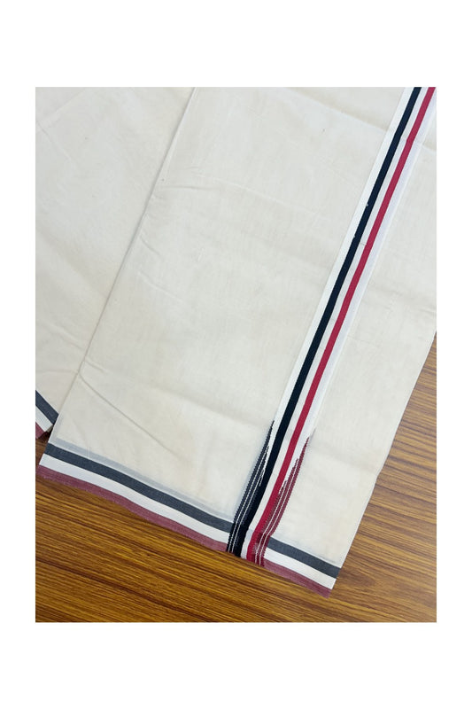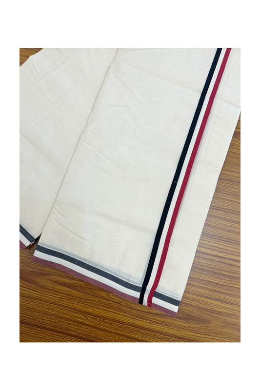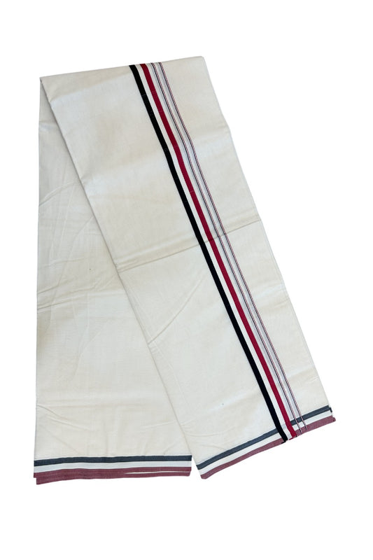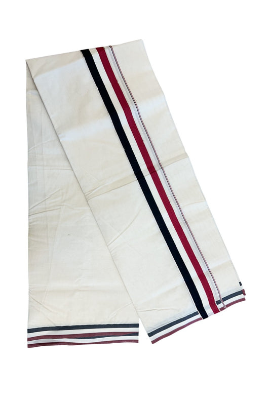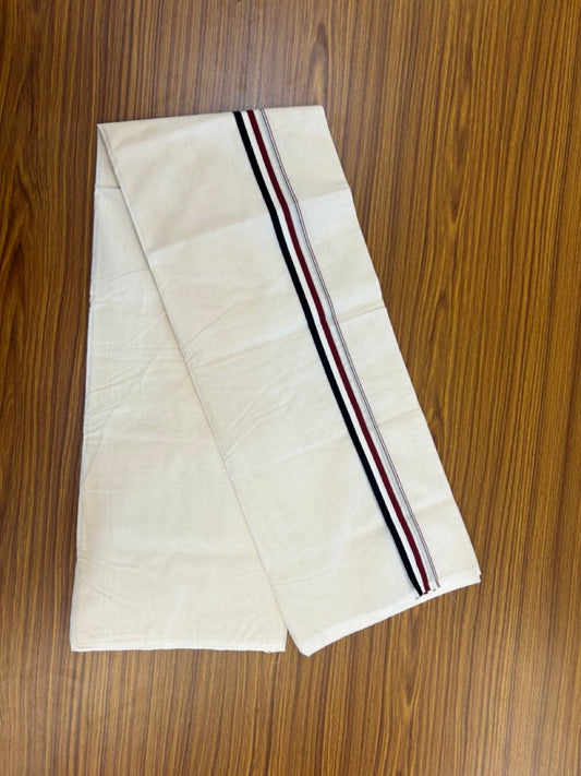 Admk Veshti - 20% Discount! KaithariKada 100% Cotton Off White Double - (Unbleached) Mundu/Dhoti - 100X100 - 1.75 inch Black White & Maroon kara - 4KK5211ASH