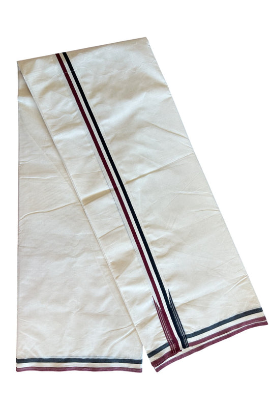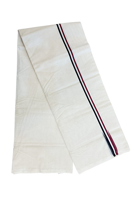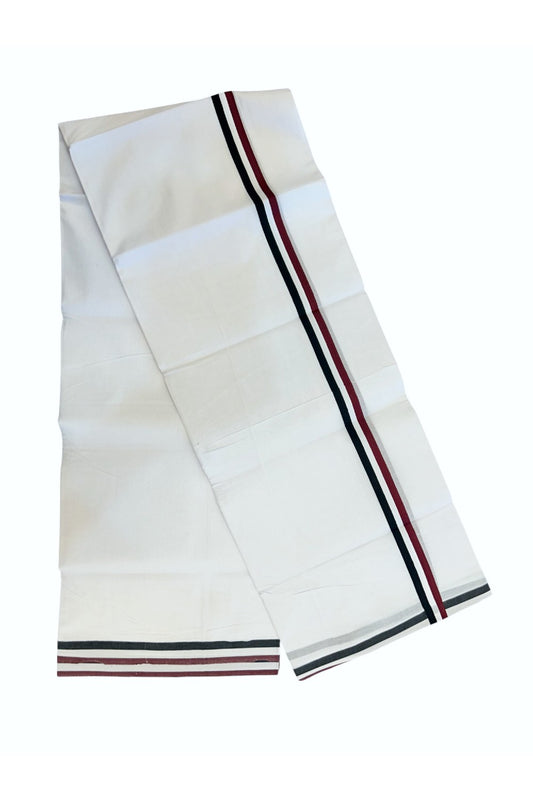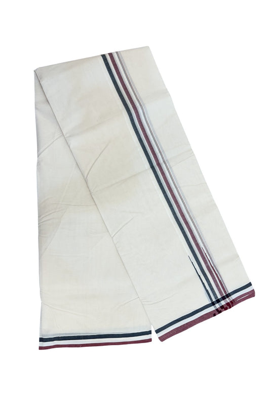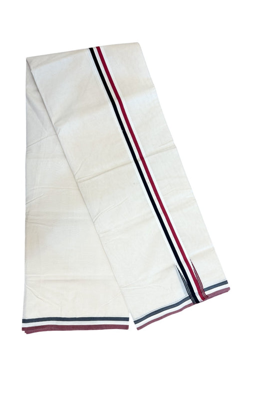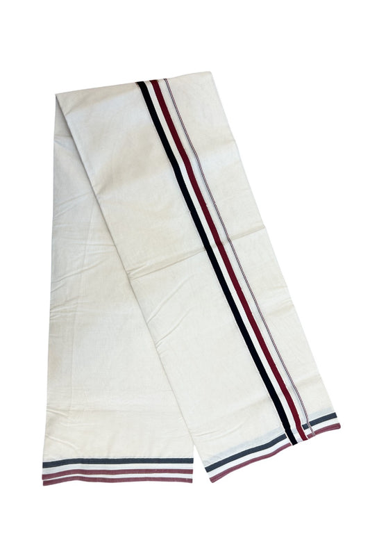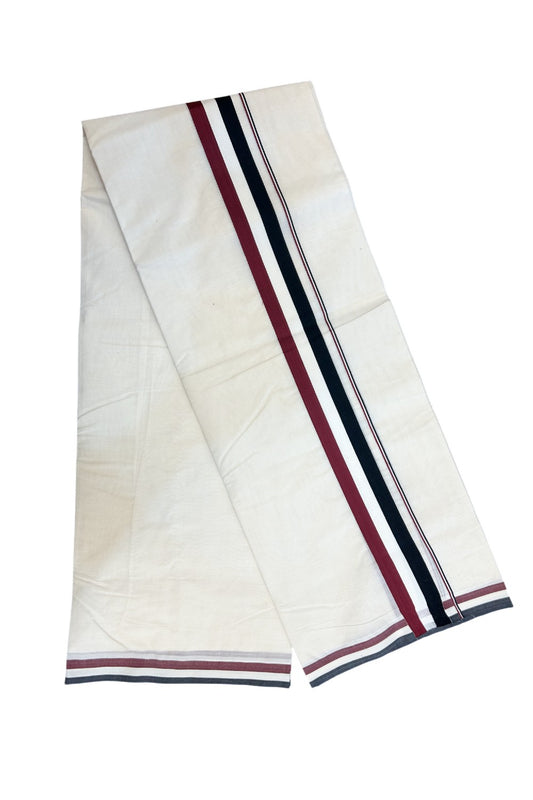 Admk Veshti - 20% Discount! KaithariKada 100% Cotton Off White Double - (Unbleached) Mundu/Dhoti - 100X100 - 1.5 inch Maroon White & Black kara 4 mtr (8.5 muzham)- 17 KK5268 ASH