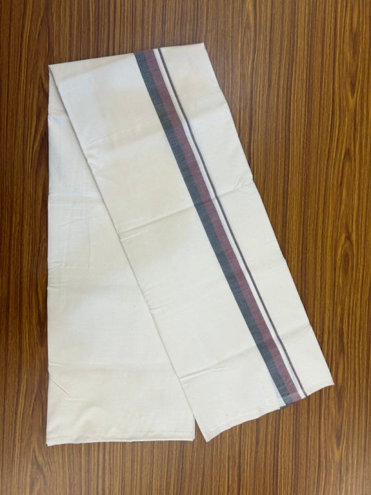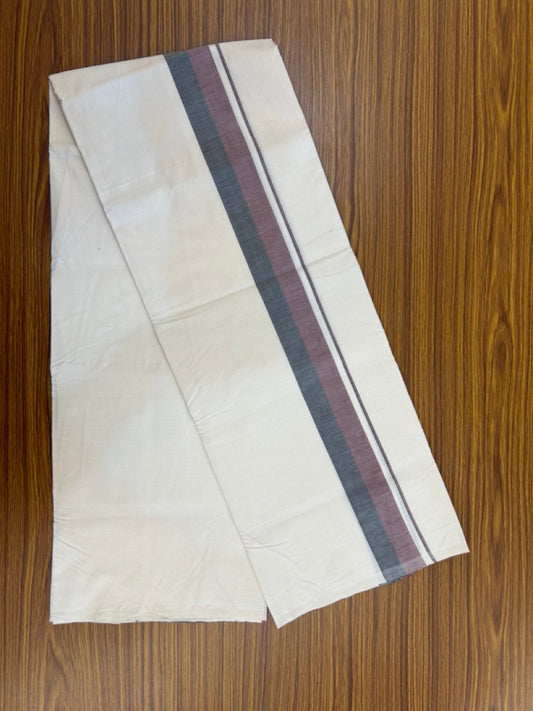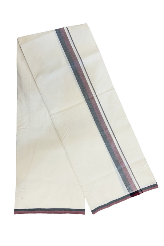 DMK Veshti - 11% Discount ! KaithariKada Balaramapuram 100% Cotton Single Off White (Unbleached) Mundu/Dhoti- Twisted 100s Thread - 2 inch Puliyilakkara Maroon & Black Shaded Kara (2 meter / 4 muzham) - 9 KK5257 ASH