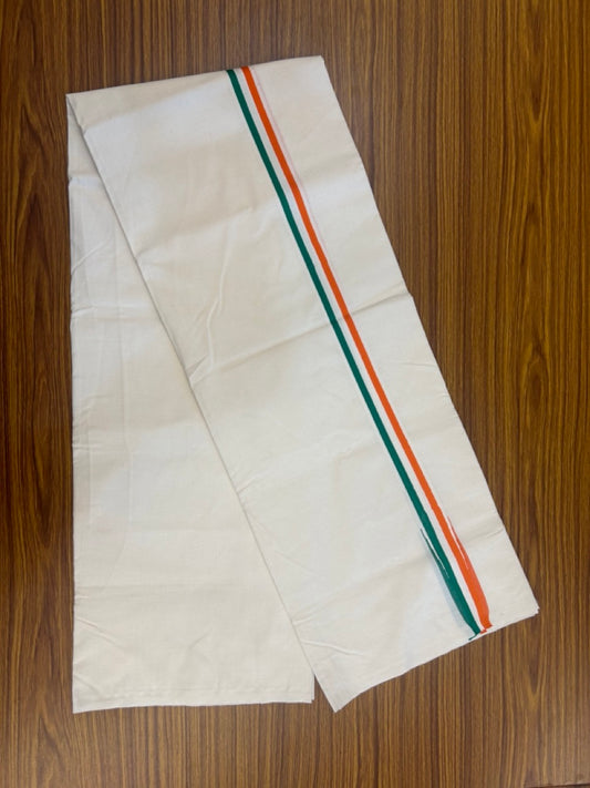 Congress Veshti - 20% Discount! KaithariKada 100% Cotton off white Double - (Unbleached) Mundu/Dhoti - 100X80 - 1 inch Orange White & Green Kara - 30KK5218ASH