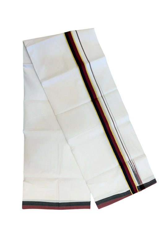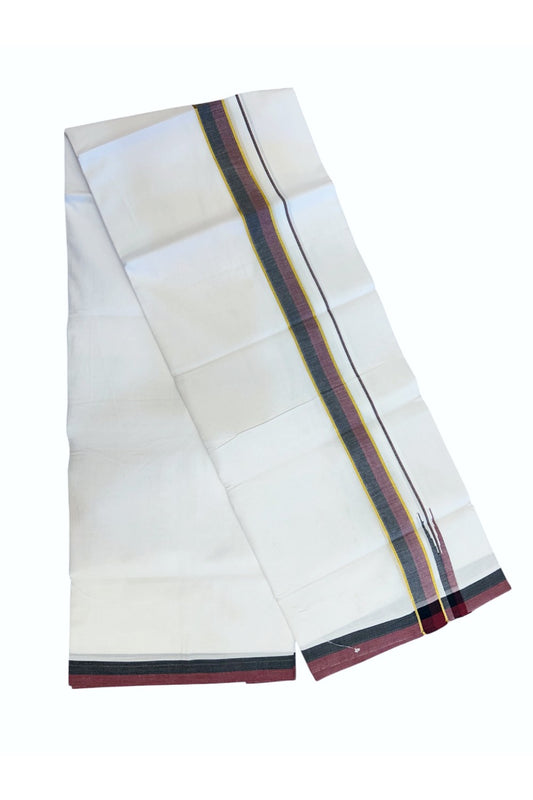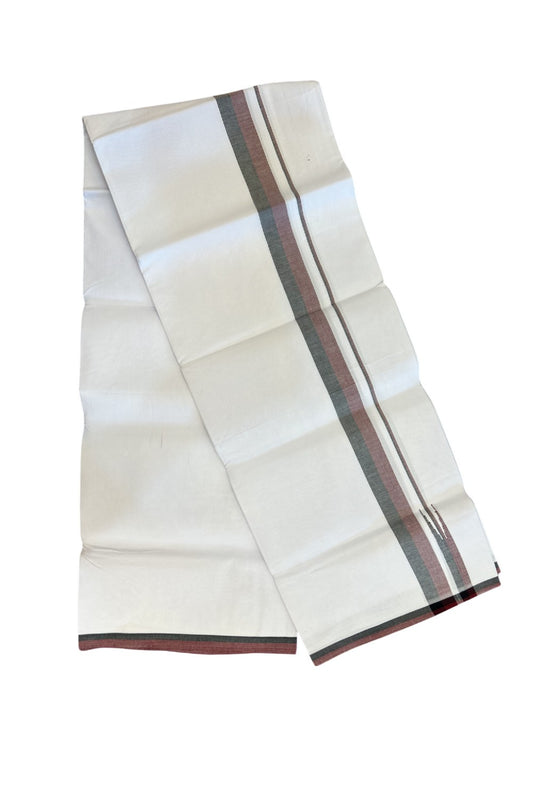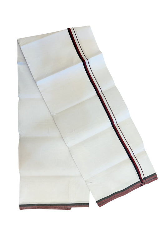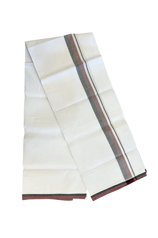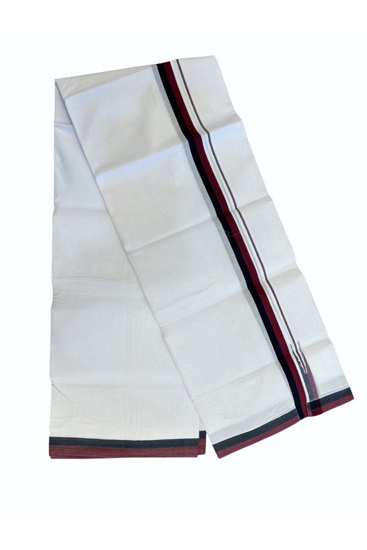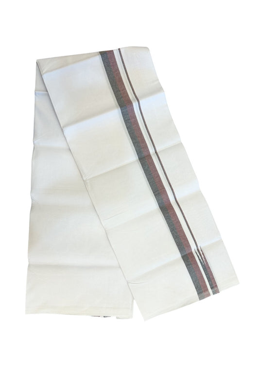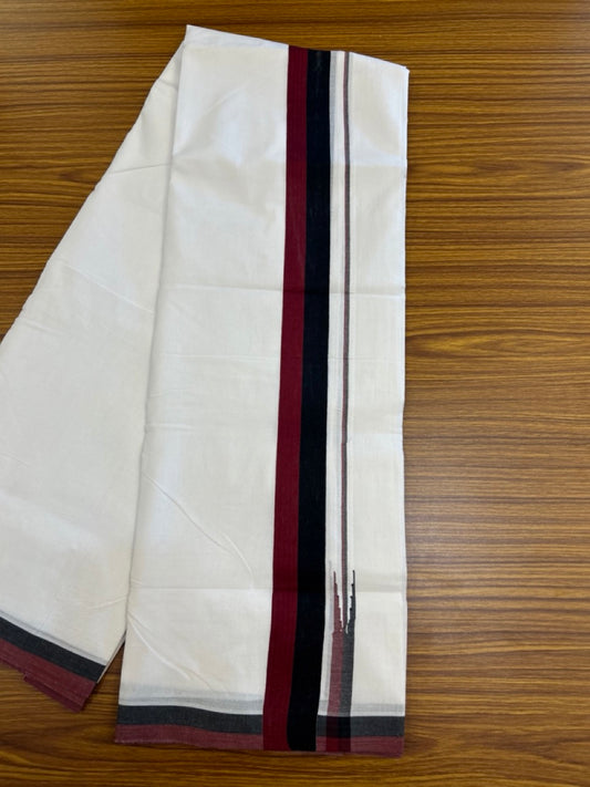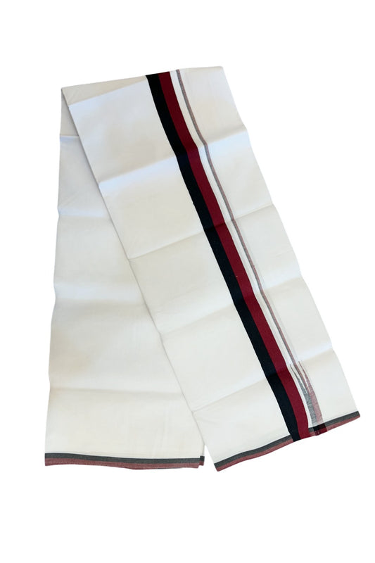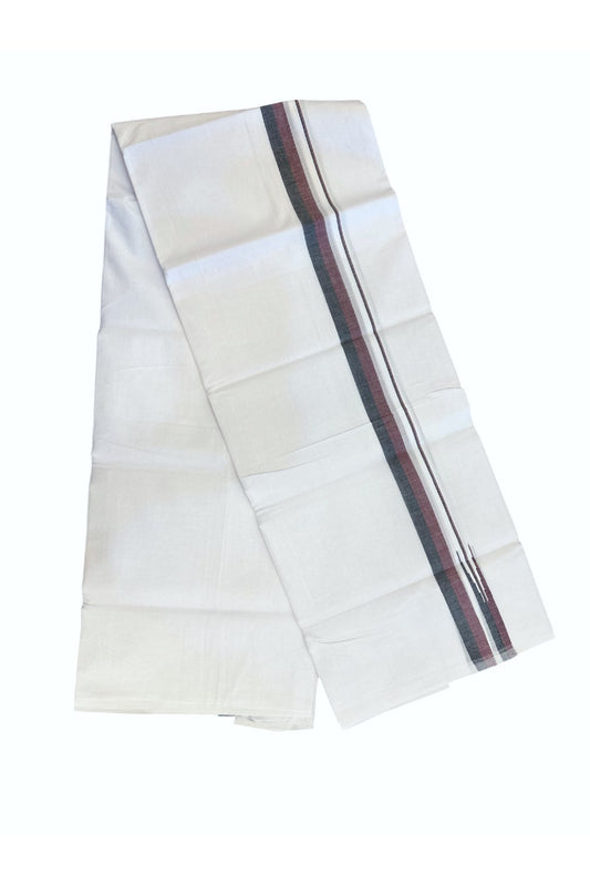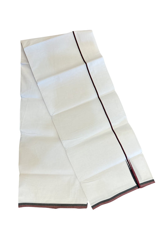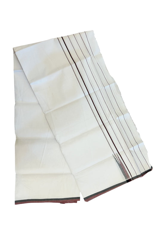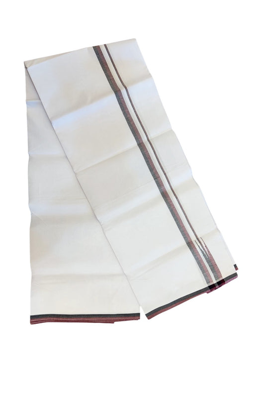 Dmk Veshti - 20% Discount !! KaithariKada Balaramapuram Pure White Double Mundu/Dhoti - 100X100 - Puliyilakkara 0.75 inch Maroon & Black Thin Chutty Kara 3.75 mtr (8 muzham) - 46KK5224 ASH