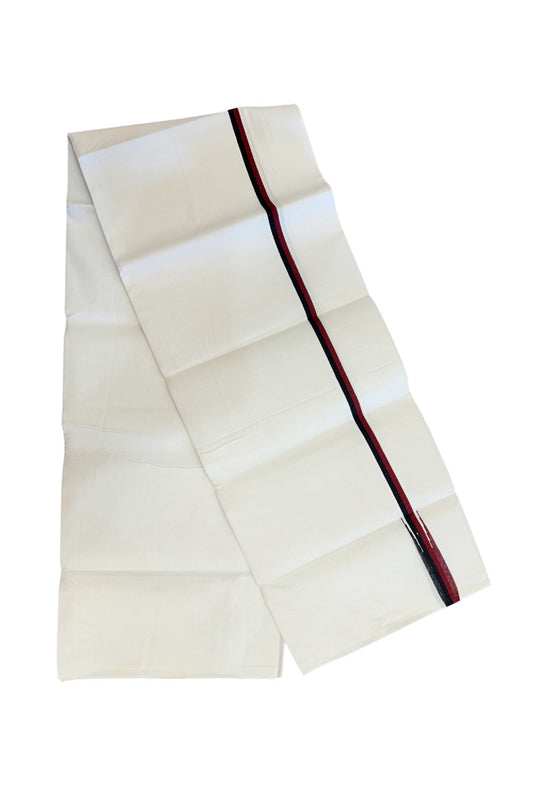 Dmk Veshti - 20% Discount !! KaithariKada Balaramapuram Pure White Single Mundu/Dhoti - 100X100 - 1.25 inch Maroon & Black Kara (2 meter / 4 muzham) - 15KK5224 ASH
