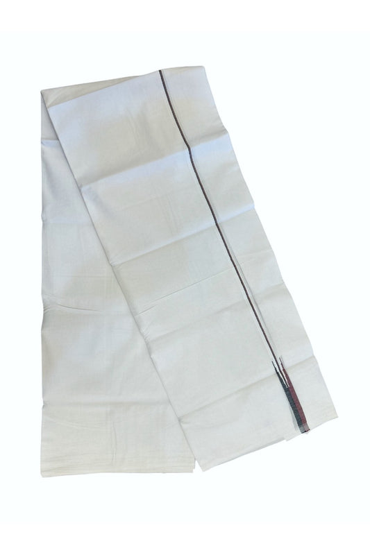Dmk Veshti - 20% Discount !! KaithariKada Balaramapuram Pure White Double Mundu/Dhoti - 100X100 - Puliyilakkara 0.25 inch Maroon & Black Thin Chutty Kara 3.75 mtr (8 muzham) - 51KK5224 ASH