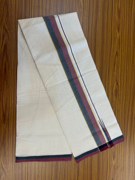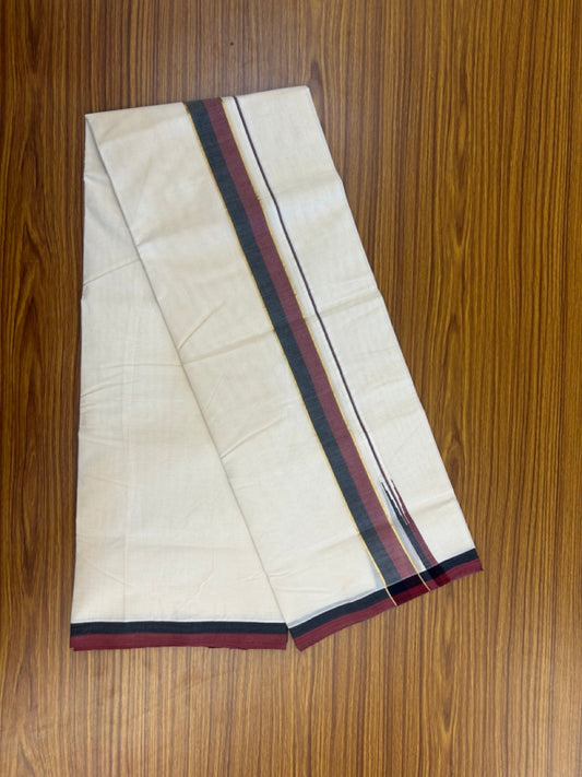DMK Veshti - 20% Discount !! KaithariKada Balaramapuram Double Off white - (Unbleached) Mundu/Dhoti - 100X100 - 1.25 inch Puliyilakkara Kasavu Maroon & Black Chutty Kara - 7KK5125ASH