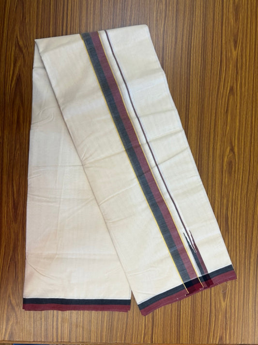 Dmk Veshti - 20% Discount !! Kaitharikada Balaramapuram Double Off White - (Unbleached) Mund/Dhoti - 100X100 - 1.75 inch Puliyilakkara Kasav Maroon & Black Chutty Kara - 1 KK5274 ASH