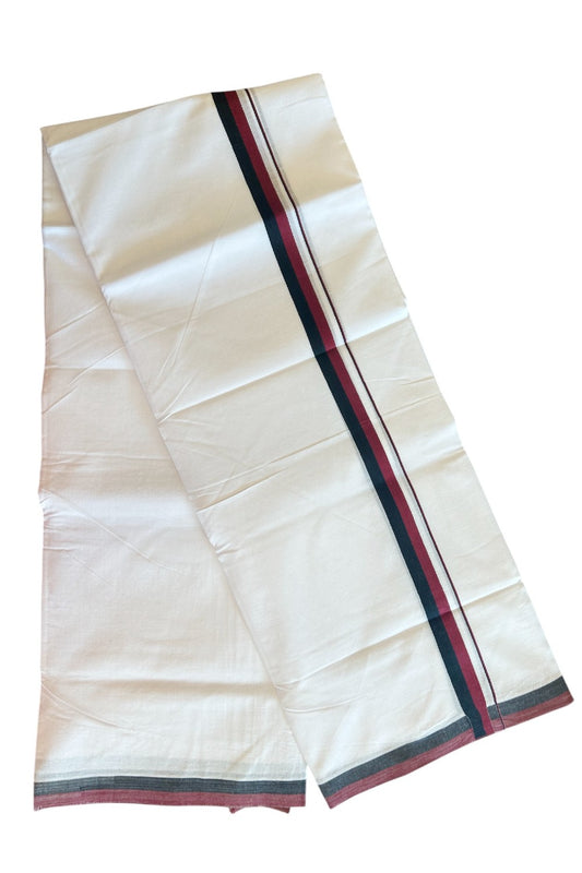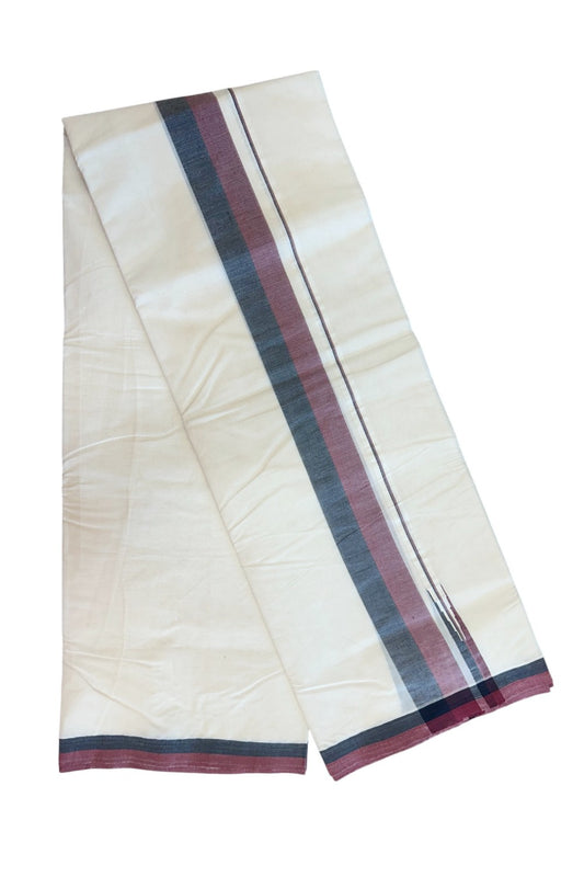 DMK Veshti - 22% Discount !! KaithariKada Balaramapuram Double Off white - (Unbleached) Mundu/Dhoti - 100X100 - 1 inch Puliyilakkara Maroon & Black Chutty Kara - 10KK5074ASH