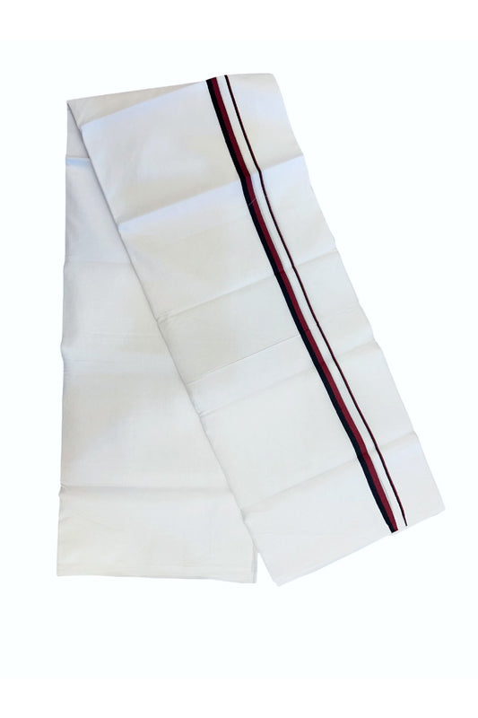 DMK Veshti - 25% Discount !! KaithariKada Balaramapuram Double PURE WHITE Mundu/Dhoti - 100X100 - 0.75 inch Puliyilakkara Maroon & Black Chutty Kara - 9KK5127ASH