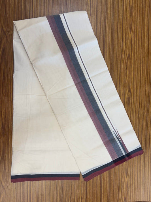 Dmk Veshti - 20% Discount! KaithariKada 100% Cotton off white Double - (Unbleached) Mundu/Dhoti - 100X100 - 2 inch Puliyilakkara Black & Maroon Chutty kara - 20KK5163ASH