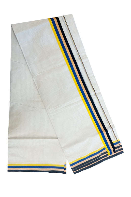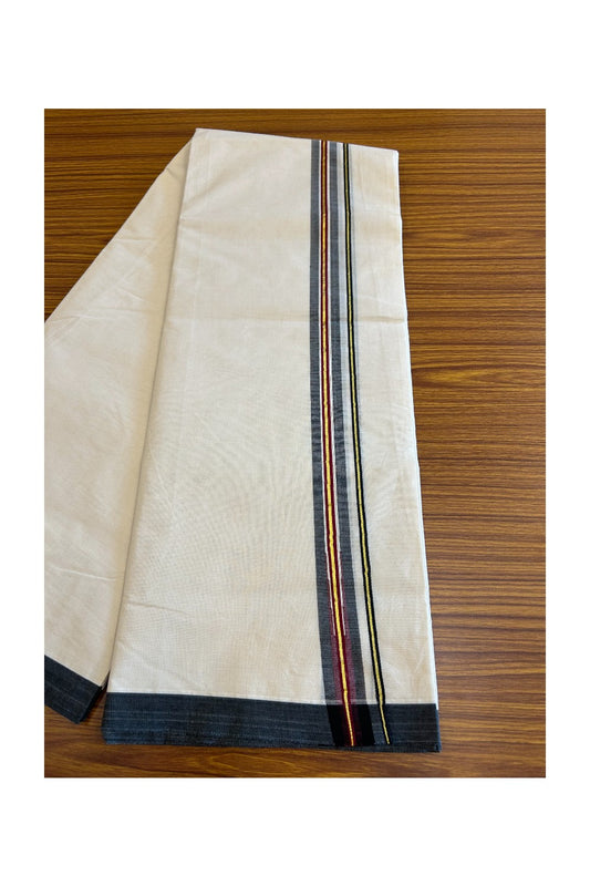 19% DISCOUNT ! KaithariKada Balaramapuram 100% Cotton off white (Unbleached) Double Mundu/Dhoti - 100X80 - 1.25 inch Multi Colour kara - 1KK5202PMC
