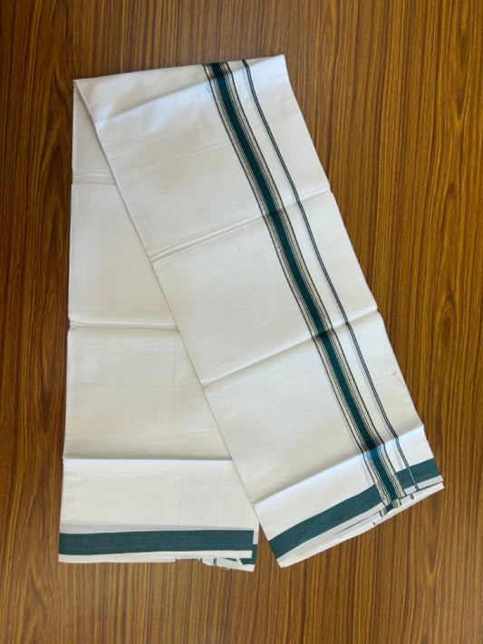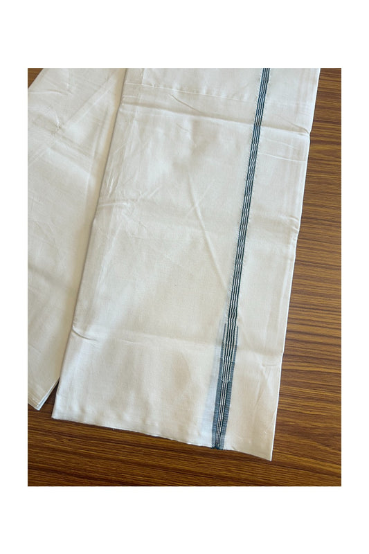 18% Discount!! KaithariKada Balaramapuram 100% Cotton Single Pure White Mundu/Dhoti - 30X60 - 1.25 inch Silver Kasav Dark Green Stripes kara 1.90 mtr (4 muzham) - 16 KK5282 PMC