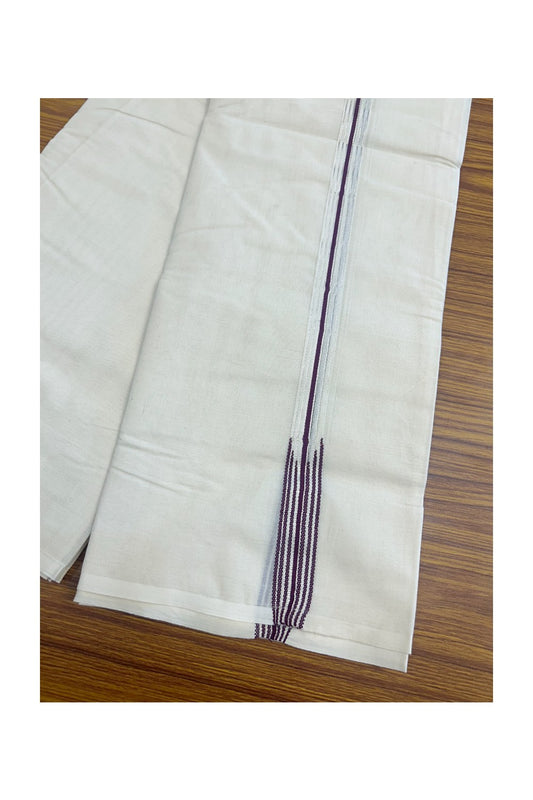 19% DISCOUNT ! KaithariKada 100% Cotton OFF WHITE - (Unbleached) Double Dhoti/Mundu- 100x100 - 0.75 inch 6 Line Puliyilakkara Purple & Silver Chutty Kara 3.50 meters - 7KK5140ASH