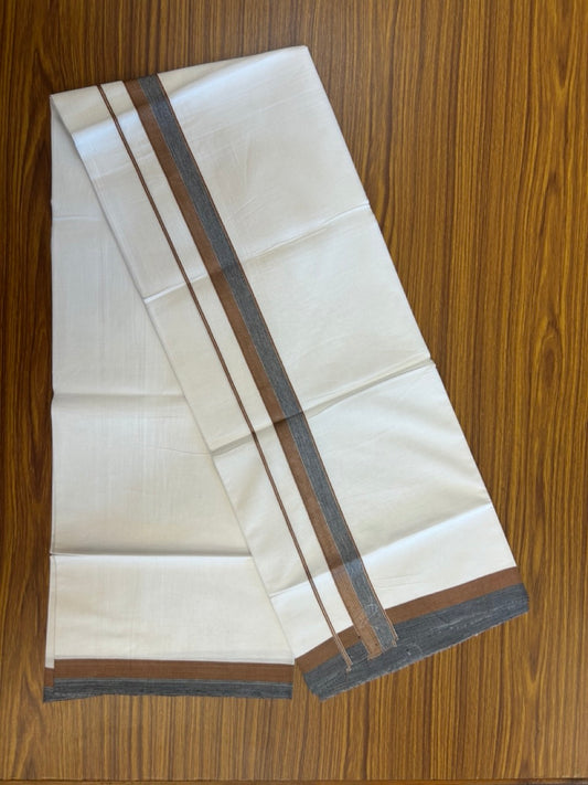 18% Discount!! KaithariKada Balaramapuram 100% Cotton Single Pure White Mundu/Dhoti - 30X60 - 1.25 inch Silver Kasav Black & Dark Brown Stripes kara 1.90 mtr (4 muzham) - 26 KK5282 PMC