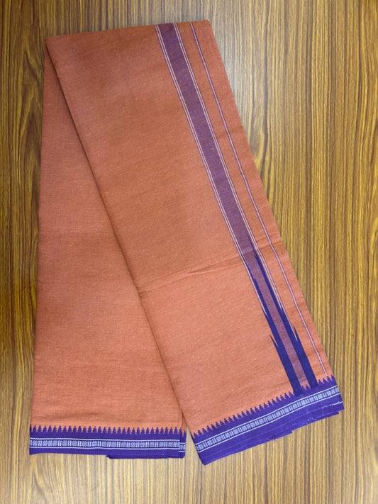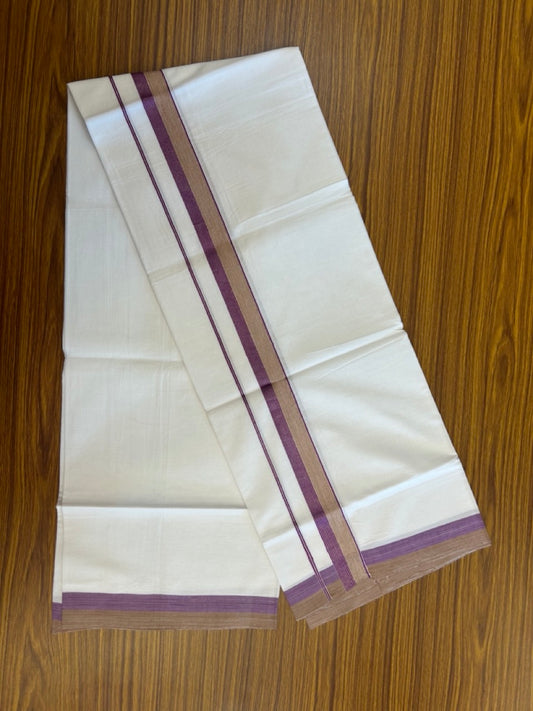 18% Discount!! KaithariKada Balaramapuram 100% Cotton Single Pure White Mundu/Dhoti - 30X60 - 1.25 inch Silver Kasav Purple & Sand Brown Stripes kara 1.90 mtr (4 muzham) - 25 KK5282 PMC