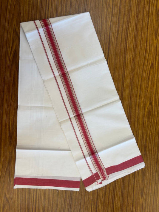 19% DISCOUNT ! KaithariKada 100% Cotton OFF WHITE (Unbleached) Double Dhoti/Mundu- 1.5 inch Puliyilakkara Magenta Pink Striped Kara 4.5 Meters (10 Muzham) - 7KK5086ASH