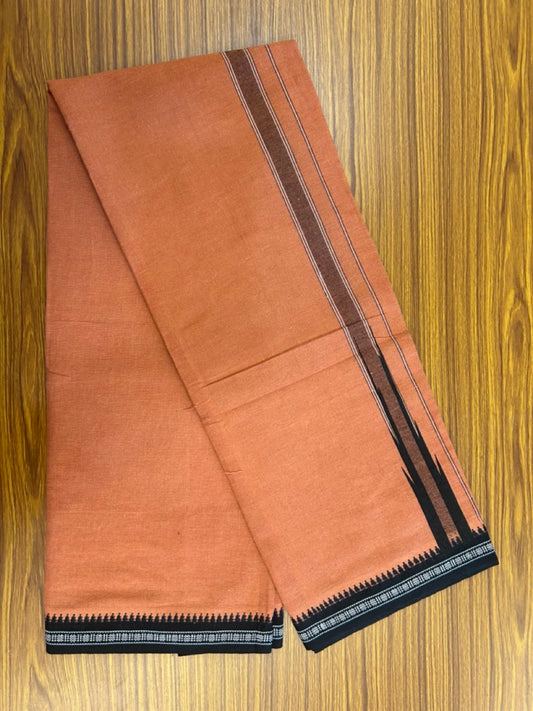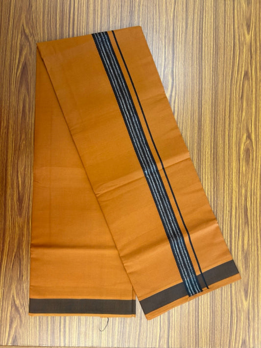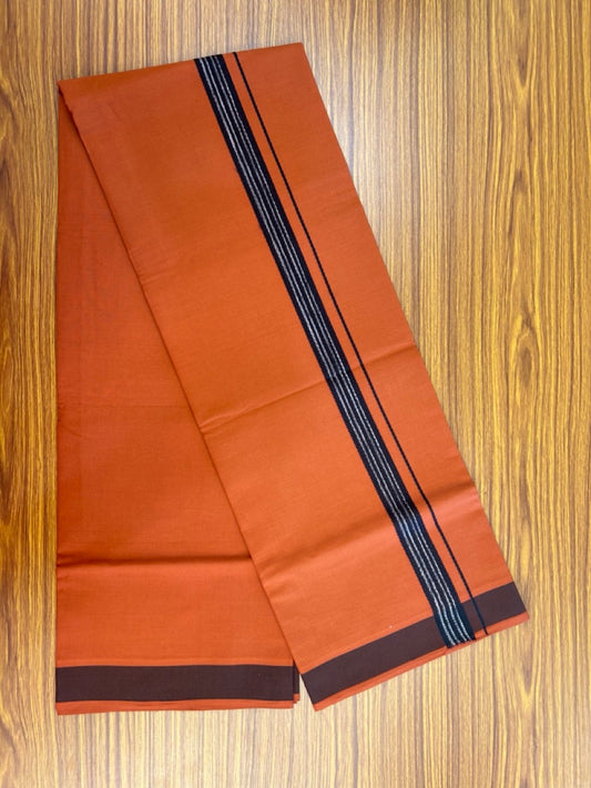 18% Discount!!! Kaitharikada 90% cotton 5 % Polyster - Single Kaily / Lungi - 1.5 inch Puliyilakkara Black Striped Printed Chutty Kuppadam kara with Kavi colour body (2 meter / 4 muzham)- 9KK8023 AS
