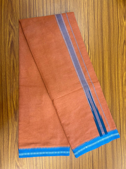 18% Discount!!! Kaitharikada 90% cotton 5 % Polyster - Single Kaily / Lungi - 1.5 inch Puliyilakkara Peacock Blue & Blue Striped Printed Chutty Kuppadam kara with Kavi colour body (2 meter / 4 muzham)- 11KK8023 AS