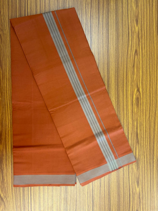 18% Discount!! KaithariKada Handloom Millpaav Balaramapuram - 100% Pure Cotton Off White (Unbleached) - 100x100 Double Mundu/Dhoti - Puliyilakkara Chutty Silver Kasavu Maroon Kara - 10KK114ASH