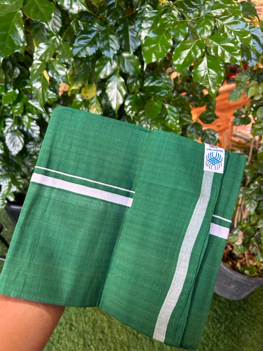 Handloom Single Hallmarked - 10% Discount !! KaithariKada 100% Pure Cotton - Mundu/Dhoti Green Body White 0.5 inch Kara- (2 meter / 4 muzham)- 2 KK8030 ELA