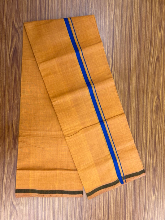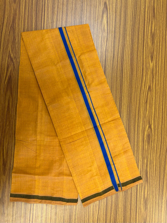 Handloom Single Hallmarked - 10% Discount !! KaithariKada 100% Pure Cotton - Mundu/Dhoti 0.5 inch Blue Kara with Kavi colour Body - (2 meter / 4 muzham) - 29 KK8032 ELA