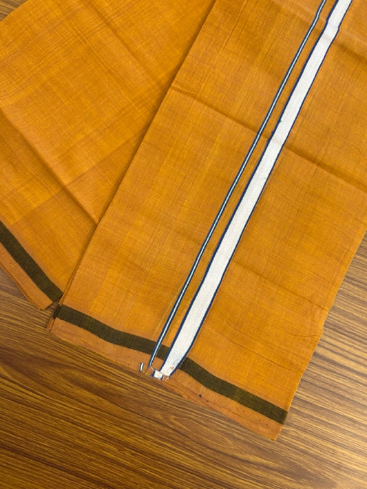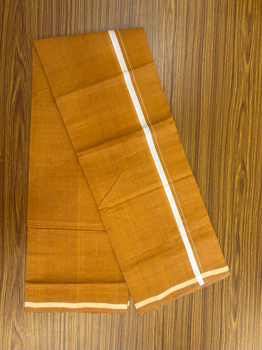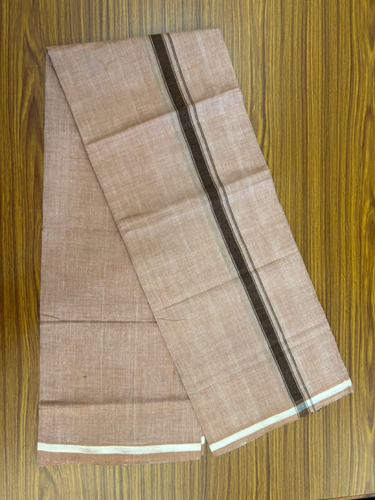 Handloom Single Hallmarked - 10% Discount !! KaithariKada 100% Pure Cotton - Mundu/Dhoti 0.75 inch Brown Kara with Peach brown colour Body - (2 meter / 4 muzham) - 38 KK8032 ELA